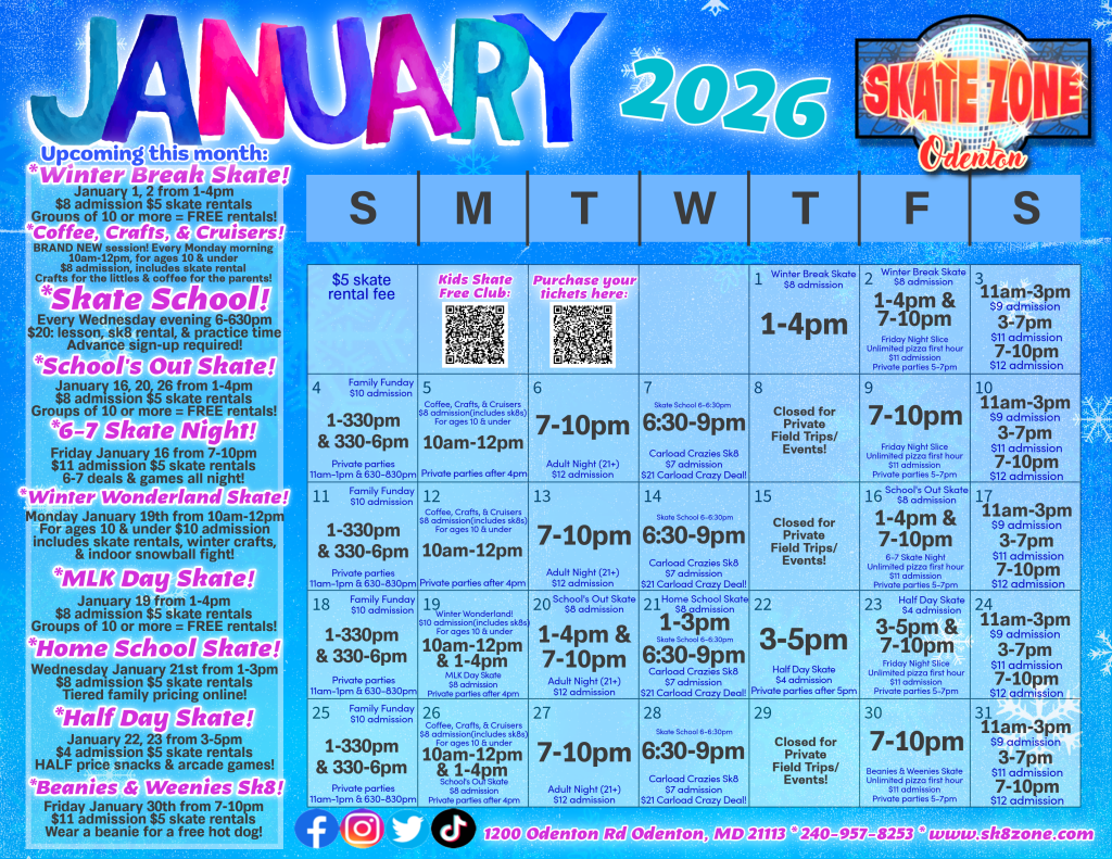 Purchase your admissions/skate rentals for any session here!