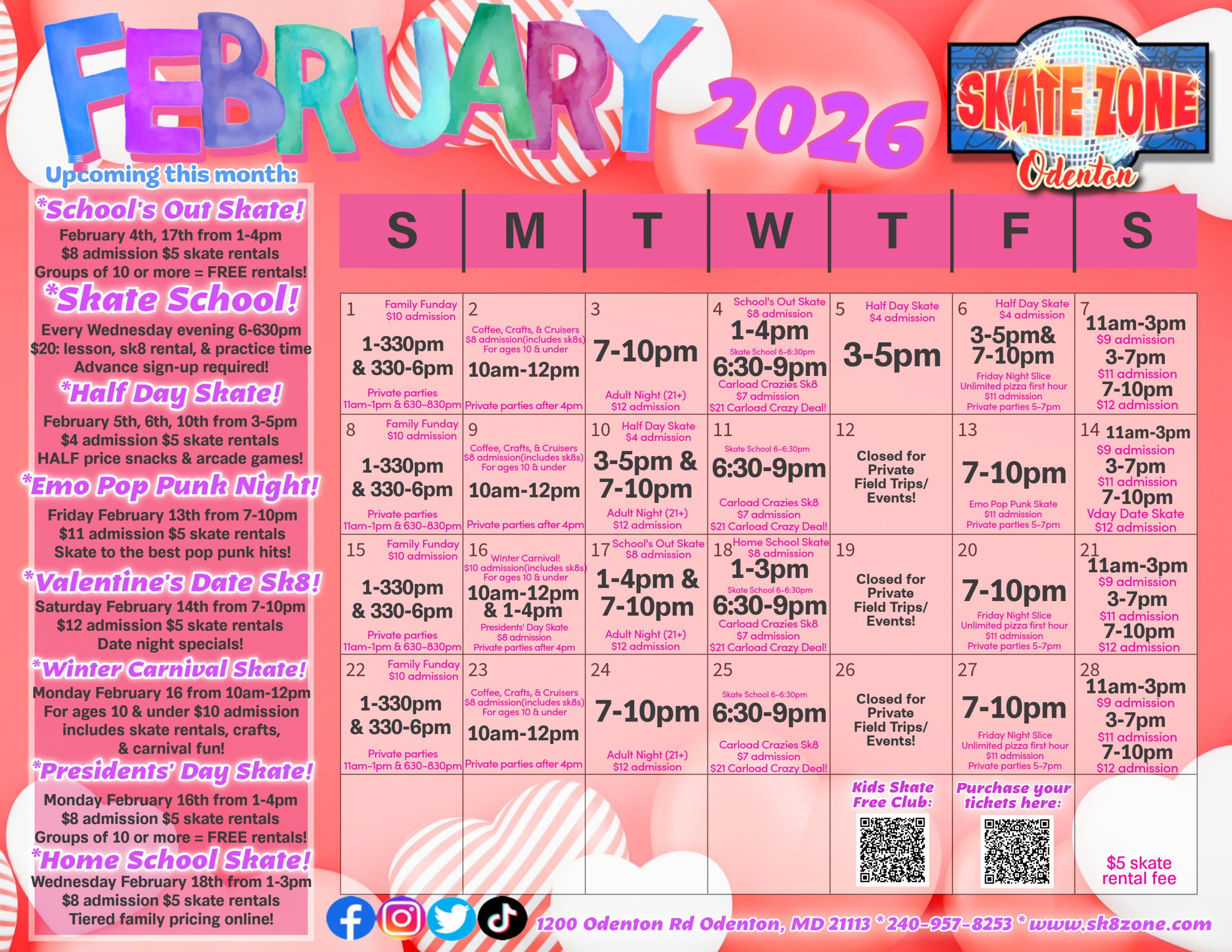 Purchase your admissions/skate rentals for any session here!